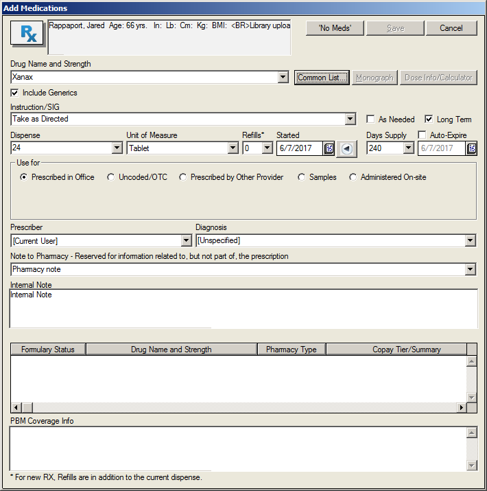 RX: The RX property is used to allow a drug to be added to the patient’s medications. For example, a branch called Amoxicillin can be selected, which generates the prescription in the Medications screen.