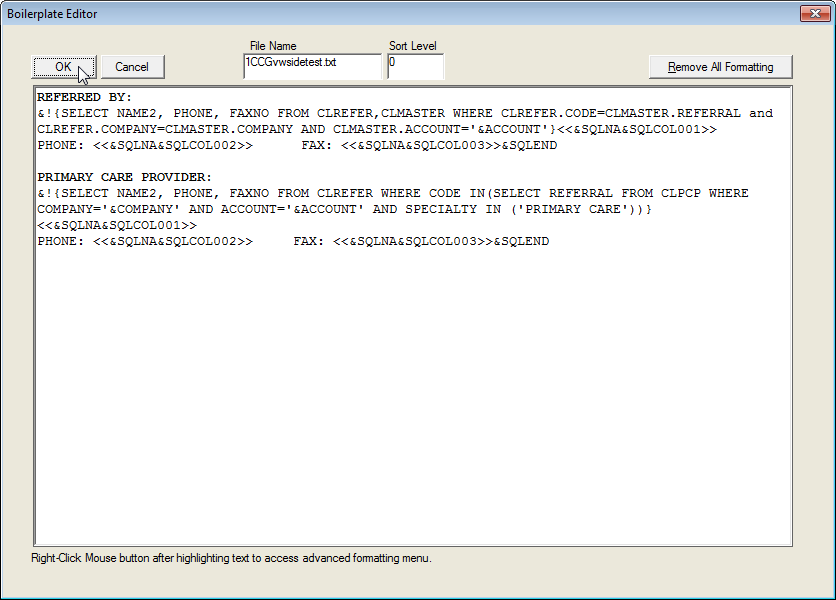 Boilerplates are usually used to create medical documents. These documents follow a strict format and data order. Sort Levels are numbers assigned to each boilerplate and are used to determine the order in which the text will appear in the final document. Given that each boilerplate belongs to a certain section of document, each will have a specific position whenever they are used. To make this consistent, a pre-made convention for numbering boilerplates has already been included and is shown below.