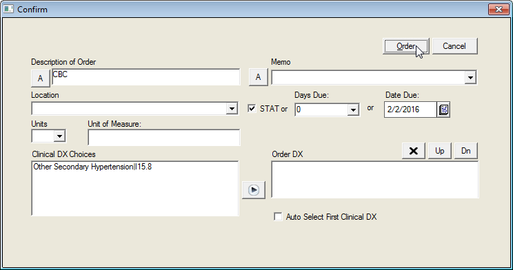 Order: An order property is used when an Order should be automatically sent to the Order entry system. For example, a “Two Week Follow Up Appointment” branch generates an order to the scheduling department to schedule that follow-up.