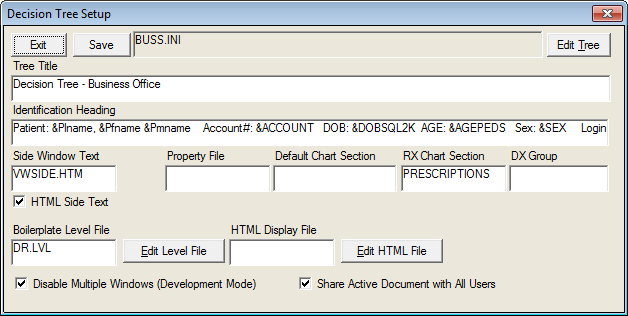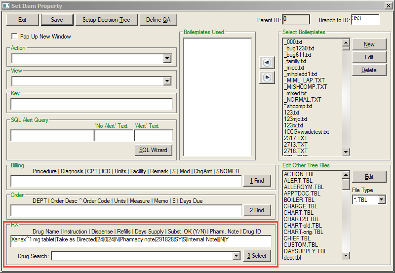 RX Chart Section: The Decision Tree is capable of creating prescription documents. You must specify here which Chart section will be used for storage of prescription documents. If you are using the standard chart sections provided by MedInformatix, this value is “74”.