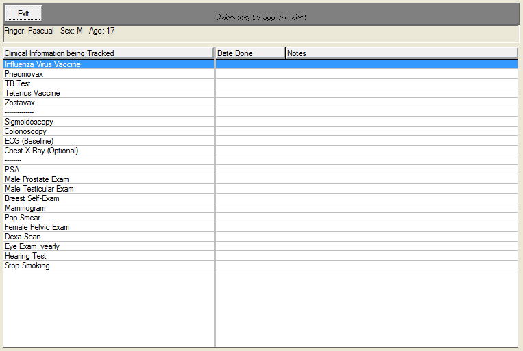 Preventive care done in the office is already being tracked by existing forms and questionnaires found in the Decision Tree. However, those that are done at outside locations need to be tracked as well and will often have to be recorded manually.