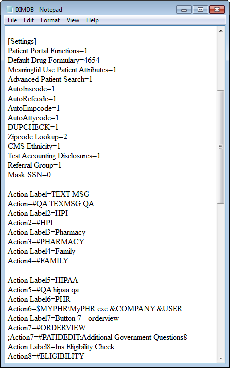 Each installation of MedInformatix includes standard demographic preferences that can be customized to display particular information; to make a field required; and or to check for duplicate information as necessary. To make such changes, the dimdb.tbl (demographic preferences) file must be edited. The DimDB manual describes the settings available in the dimdb.tbl files.