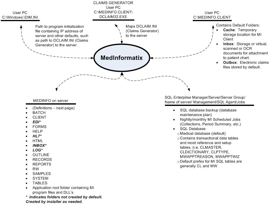 The second location for data tables in MedInformatix is the SQL database, which is stored with SQL on a server. (See your technical support for this location.) A familiarity with SQL and SQL statement is necessary in order to work with these tables of information.