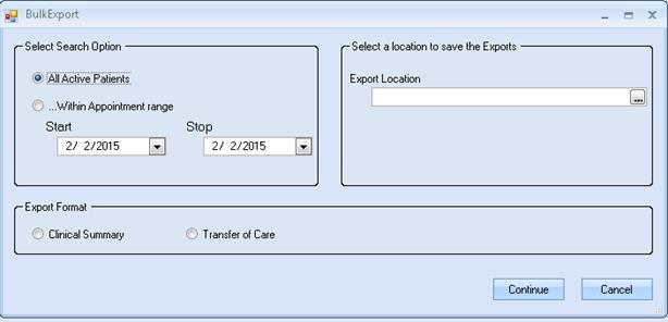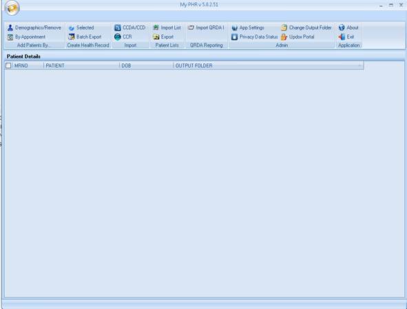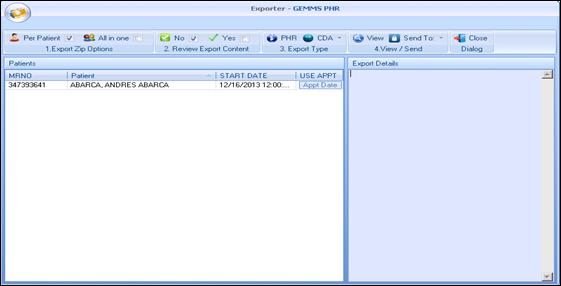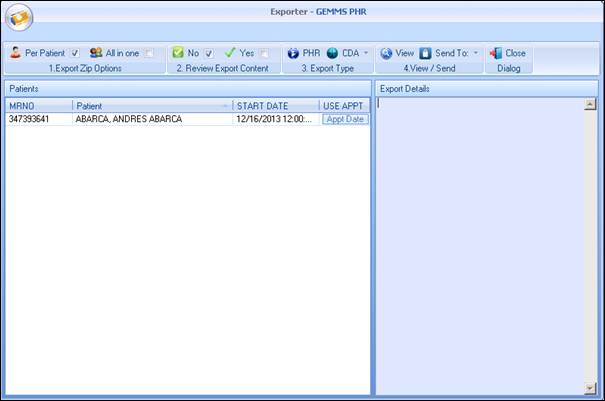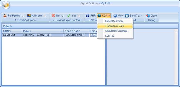 This allows you to select the type of file you wish to create. Either a PHR (Personal Health Record) or a CCDA type document may be selected for export.
