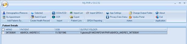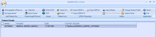 This tab allows you choose a single patient or multiple patients for the creation of a CCDA, Clinical Summary, Transition of Care or an Ambulatory Summary.