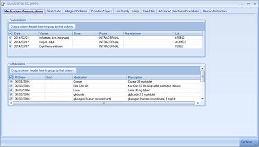7. Importing Medications-once you have reviewed the information contained in the CCDA and the current EHR record you may select all of the medications or individual medications to be imported and merged with the patient’s current medication list.