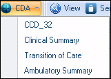 b. CDA will export a CCD, Clinical Summary, Transfer of Care, or an Ambulatory Summary based upon your choice from the drop down list