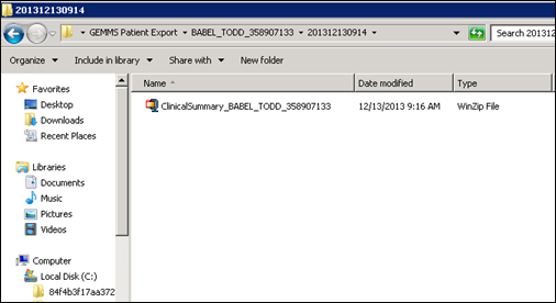 c. Once the selected document has been created and saved to the default folder location specified in the program set up. The Zip file containing the document and style sheet is ready for use. Browse to the folder using Windows Explorer to obtain the patient file.