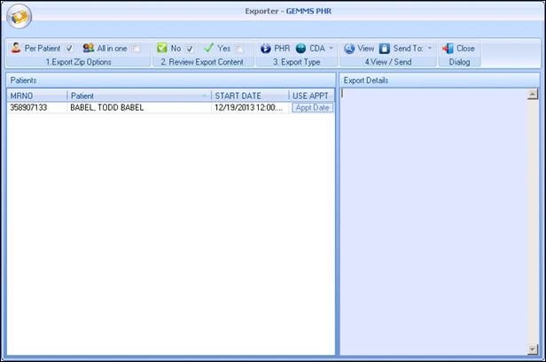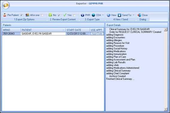 b. Yes – Allows the user to deselect certain information from the patient chart. If a batch mode is utilized each patient will be reviewed separately before the export document is created.