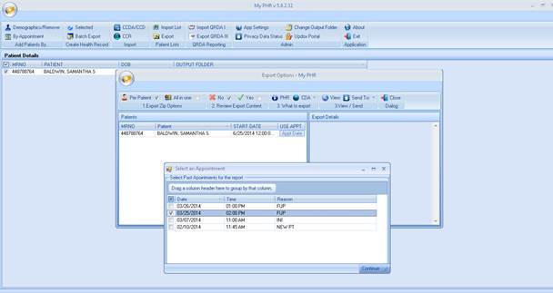 1. Click the Appt date button for each selected patient. This will allow you to select an appointment date which will limit the information included in the file to the specific appointment date selected.