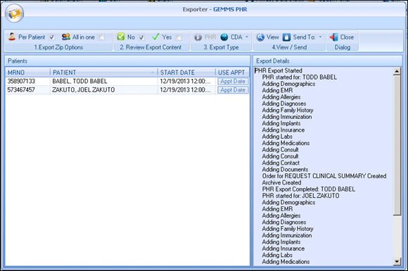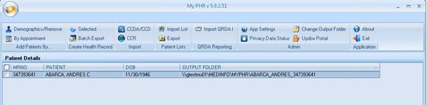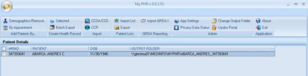 PHR allows you to create a CCD, CCDA, Clinical Summary, Transition of Care or an Ambulatory Summary for a single patient or a group of identified patients.
