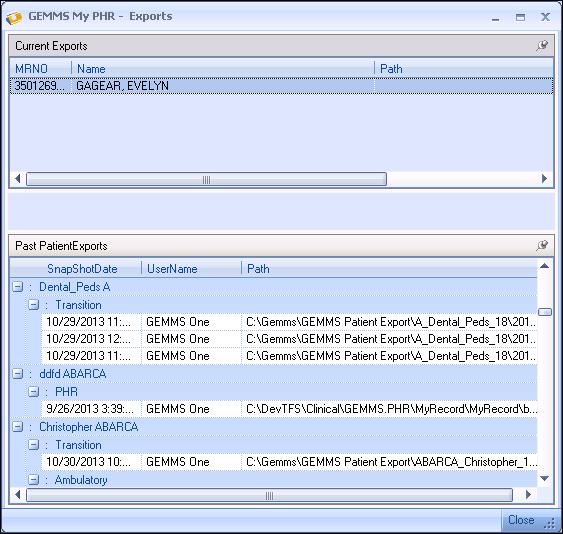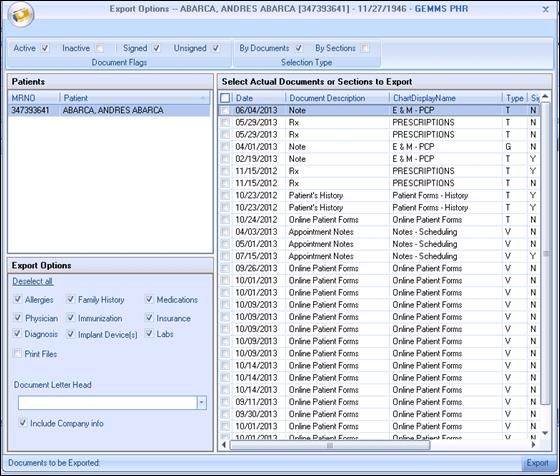 Allows the exporting a Personal Health Record that can include selected documents from the document repository.