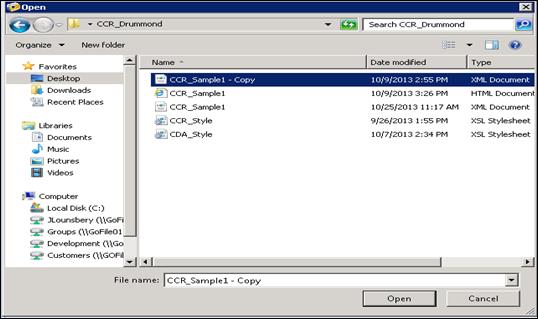 It is important to remember that the CCR when imported is placed directly into the document repository and will not allow data to be imported from this type of file.