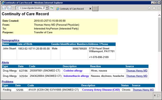 9. You may view the CCR prior to placing it into the patient’s document repository in the EHR by clicking the View CCR button.