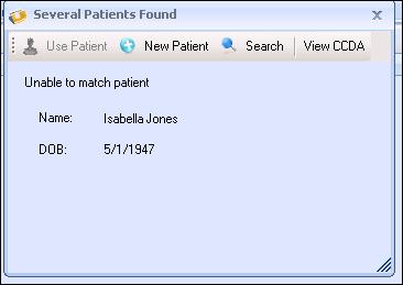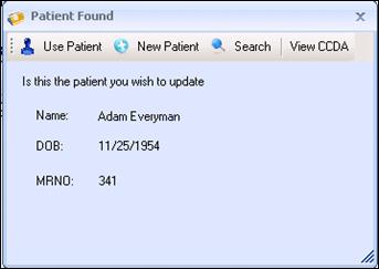 4. Next you will be prompted that there is a patient match or that the patient currently does not exist in the system. If the patient is matched the next step is to click the Use Patient Button. If the patient is not matched add the patient to the Practice management system utilizing the New Patient button.