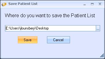 The patient lists tab allows you to create lists of patients for future reuse. This list could be for a specific doctor, facility or referring physician. Once a desired list of patients is created, the list can be exported and saved for future use, thus eliminating the need to look up patients and recreate a list that is used frequently.
