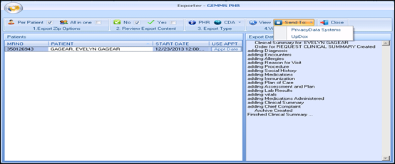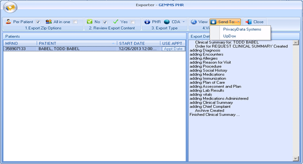 a. Yes – Allows the user to deselect certain information from the patient document being created for export. If a batch mode is utilized each patient will be reviewed separately before the export document is created.