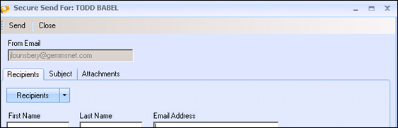 3. Once all information is entered correctly the Send button will activate. Click the Send button to route the secure message to the desire recipient.