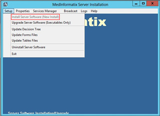 After the Installation files have been unpacked, the MedInformatix Server Installation screen will appear.