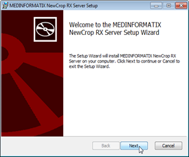 Suggested installation path is: \MEDINFO\NEWCROP\NewCropRxServerInstaller.