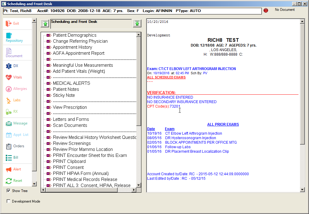 - When a new appointment is scheduled, the system can be setup to automatically launch into the Scheduling and Registration Decision Tree so that the front office staff member can recite exam preparation steps, send insurance verification orders, complete screening forms, and make clinical notes. The system can also be configured to automatically send orders when a new appointment is saved.