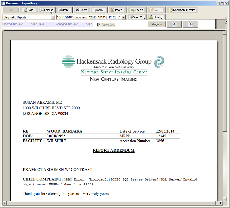- Click the Enlarge button to display in the Enhanced Editor screen. The Enlarge button will open the document in an MS Word window.