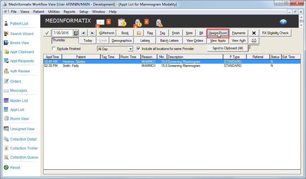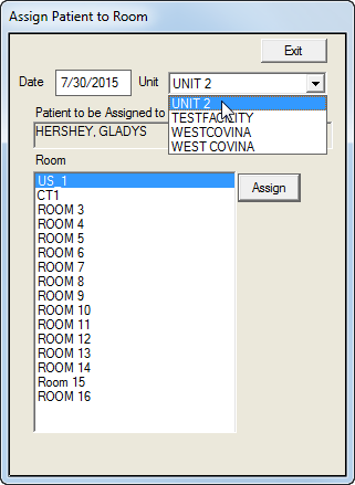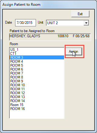 Select the desired patient from the Appt List by clicking on it once, then select the Assign Room button