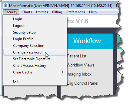 Passwords are the key to system security. Your password ensures that only you can access your account and prevents anyone else from compromising either your work or the privacy of your patients. Therefore, it is recommended that you change your password periodically and do not reveal your password to any unauthorized person.