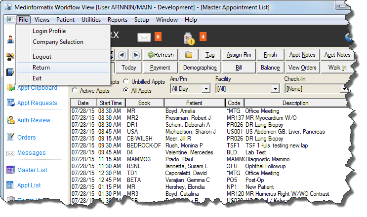 Select Return from the pulldown menu. This will return you to the Main Menu screen.