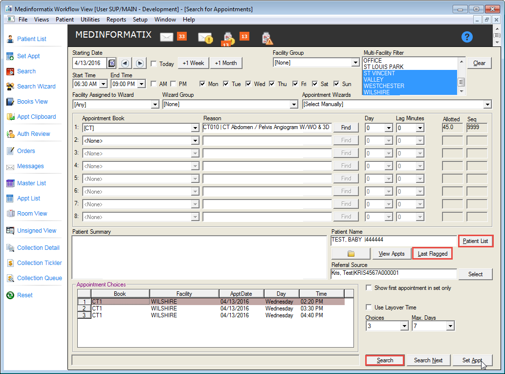 Scheduling a Patient: The Appointment Search Wizard