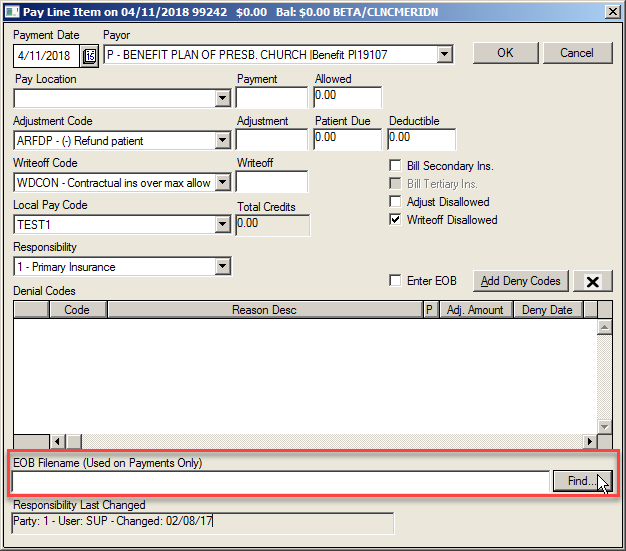 A “Find” button has been added to the screen that will launch a specified EOB folder and allow users to manually search for and select their target EOB file.