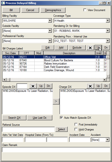 Users are now allowed to rank CPT codes from the Process Delayed Billing screen. A Biller can rearrange CPT codes into the correct order in one step when creating charges before submitting the claim.
