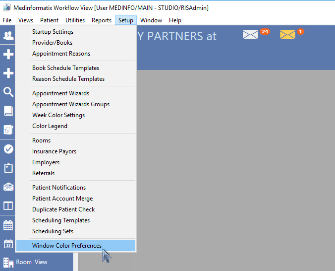 - To enable access to Color Preferences, enable the setting in the necessary Workgroup Profiles. This would typically be a managerial or administrative function. A restart of the MedInformatix Client is required to access the Color Preferences once access is granted.